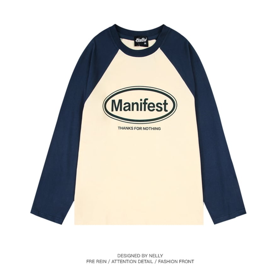 サブカル 服 地雷系 通販 早春 長袖 Tシャツ コットン バイカラー ユニセックス プリントロゴ ストリート系