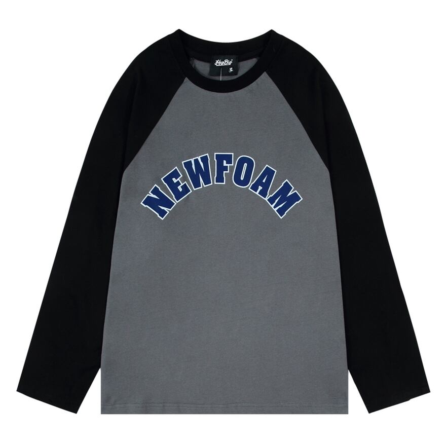 サブカル 服 地雷系 通販 早春 長袖 Tシャツ コットン バイカラー ラウンドネック ユニセックス プリントロゴ ストリート系