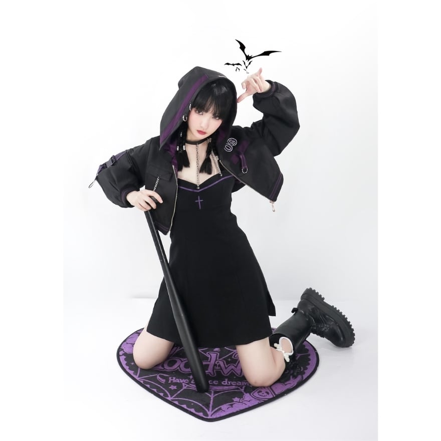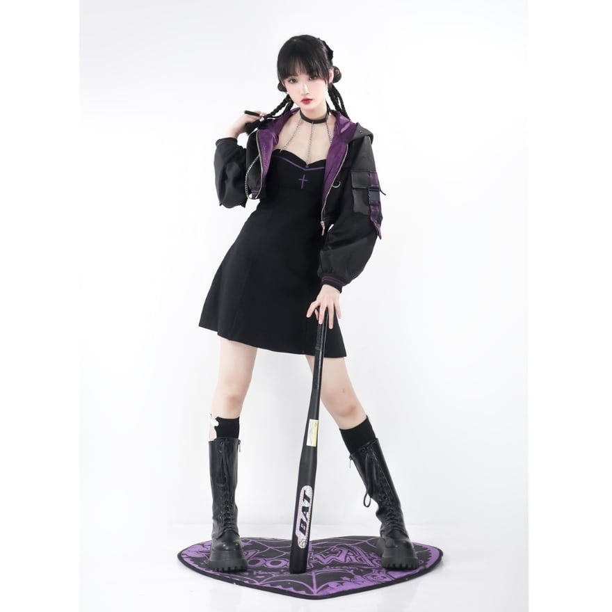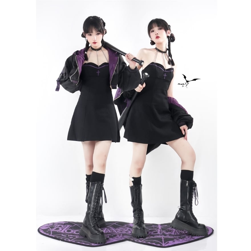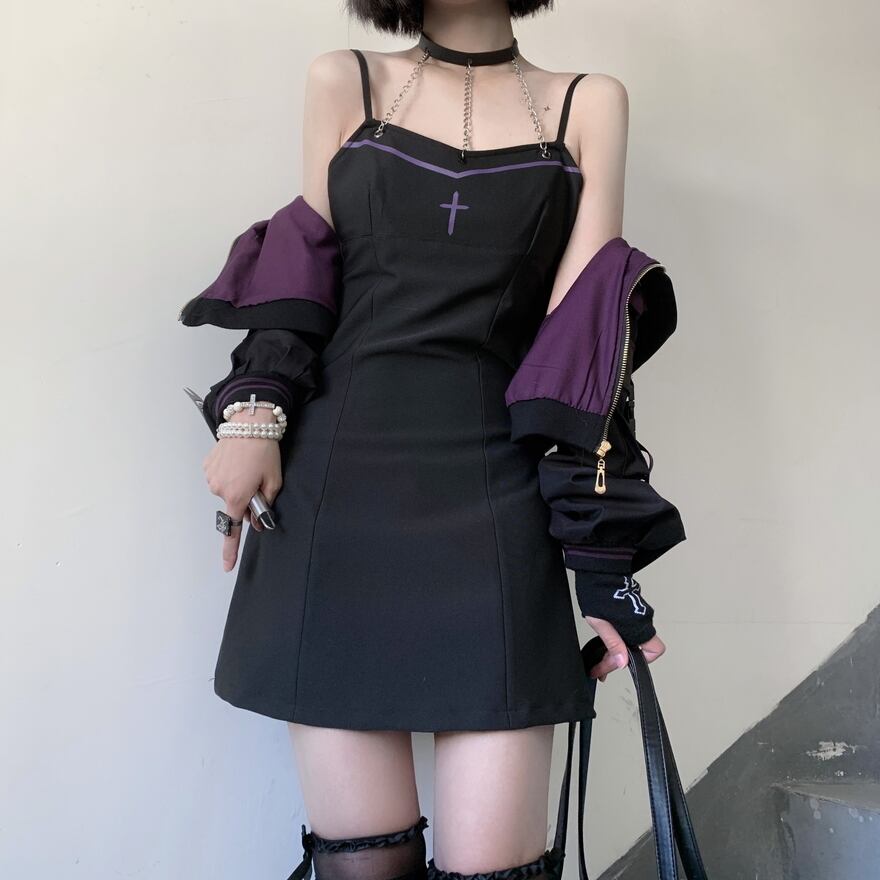 サブカル 服 地雷系 通販 ワンピース ミニ丈 ノースリーブ クロス 十字架 闇かわいい バンギャ