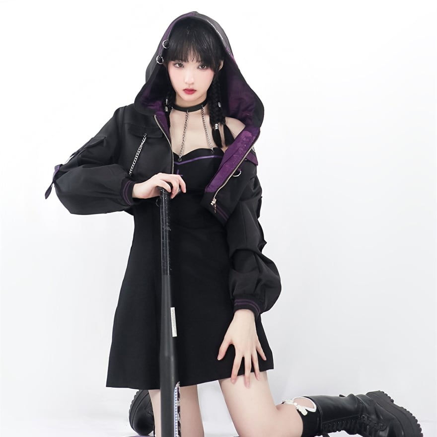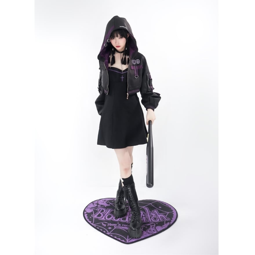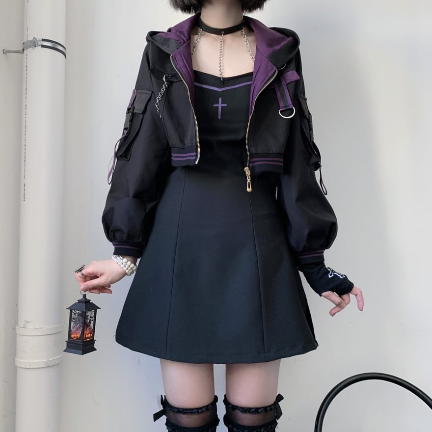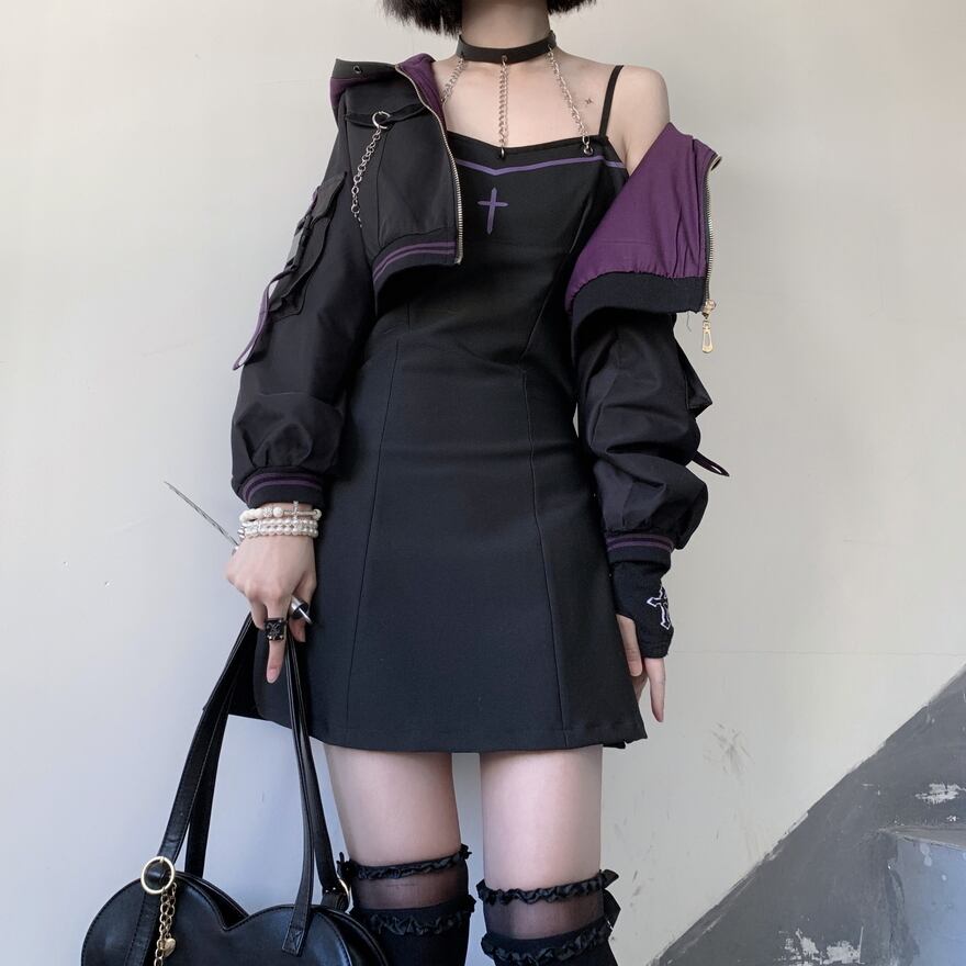 サブカル 服 地雷系 通販 ワンピース ミニ丈 ノースリーブ クロス 十字架 闇かわいい バンギャ