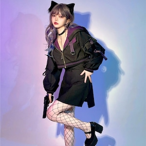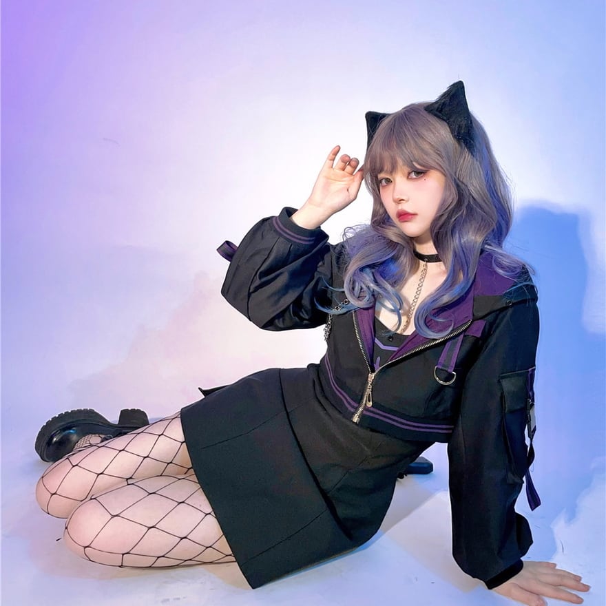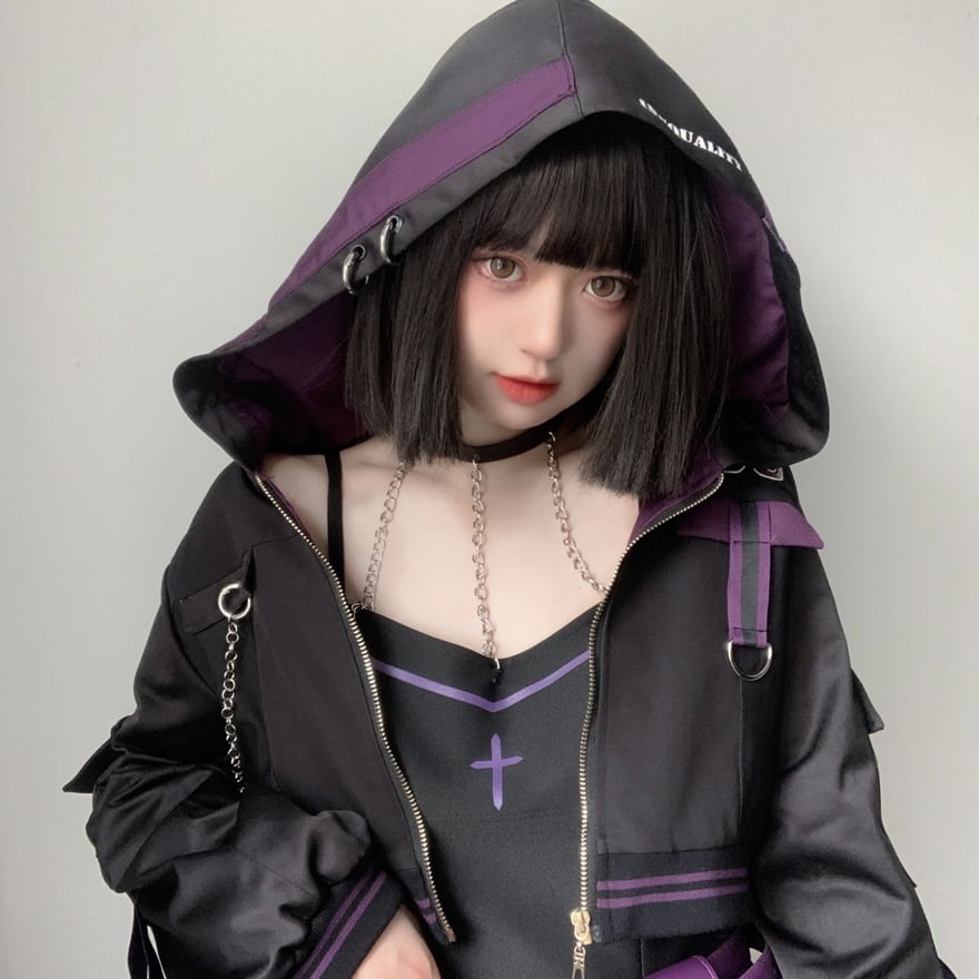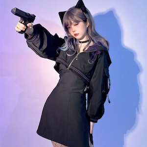 病み可愛いミニ丈に胸元のクロス十字がおしゃれなノースリーブミニワンピです