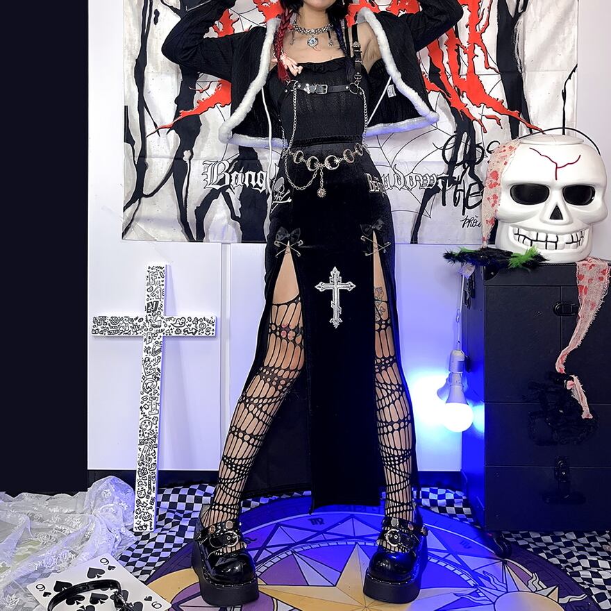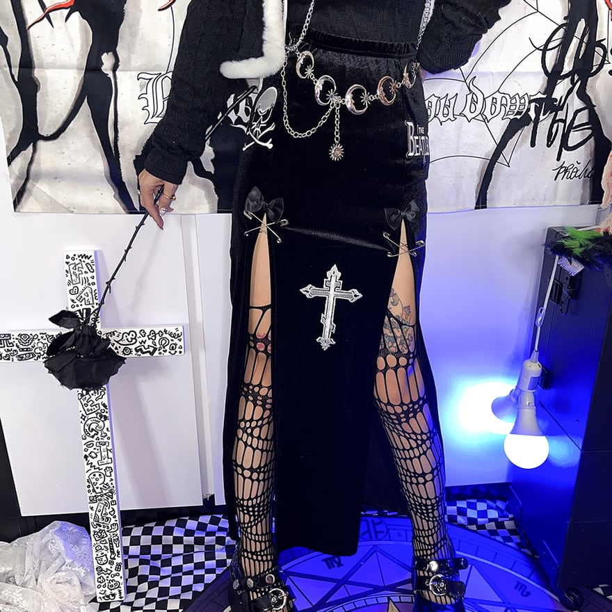ゴシックな十字架が病み可愛いAラインのスリットスカートです。