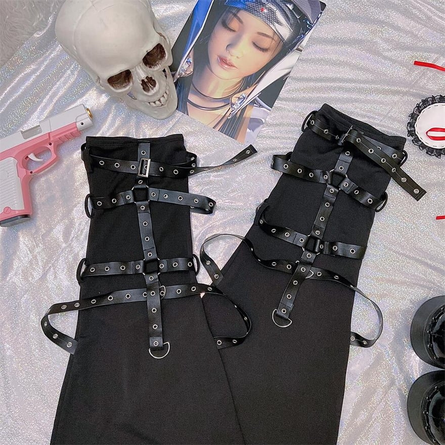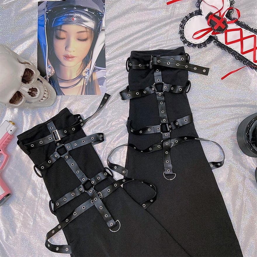 サブカル 服 地雷系 通販 FANLOVE レッグウォーマー レザーベルト ハードゴシック パンク バンギャ