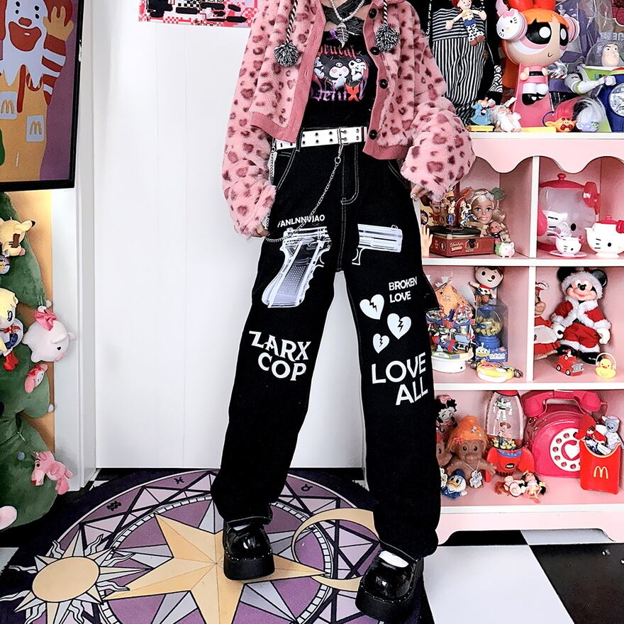 サブカル 服 地雷系 通販 FANLOVE パンツ ピストル プリント BROKEN LOVE パンク バンギャ