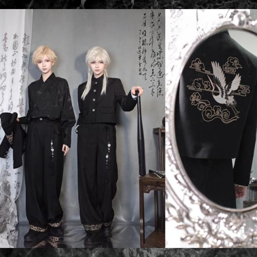 鶴のデザインがおしゃれなサブカル系チャイナ服の長袖です