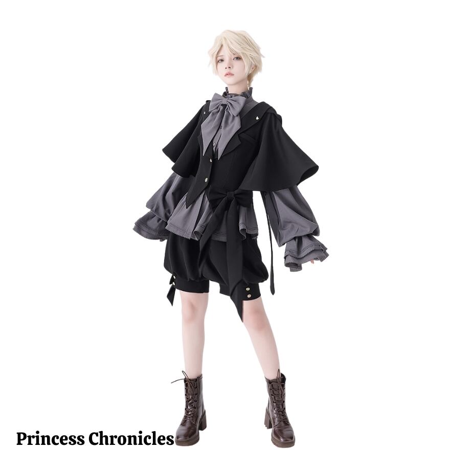 王子 皇子系 プリンス Princess Chronicles オリジナル ブラウス ペプラム リボン バルーンスリーブ 袖コン ロリータ 甘め 麗人 イベント 舞台衣装|天使と悪魔