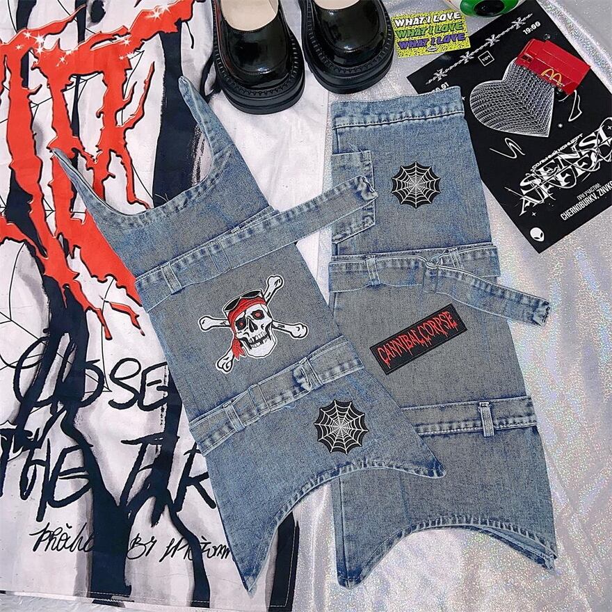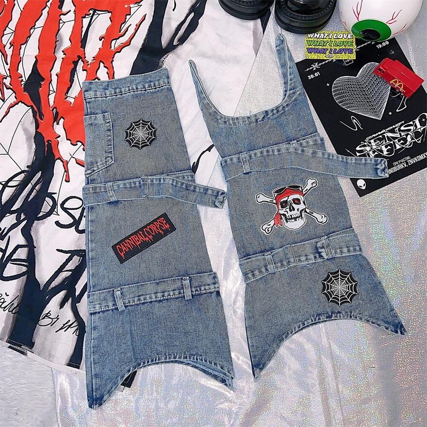 サブカル 服 地雷系 通販 FANLOVE レッグカバー デニム ベルト巻き 伸縮ゴム スカル ハードゴシック 闇かわいい バンギャ Z世代