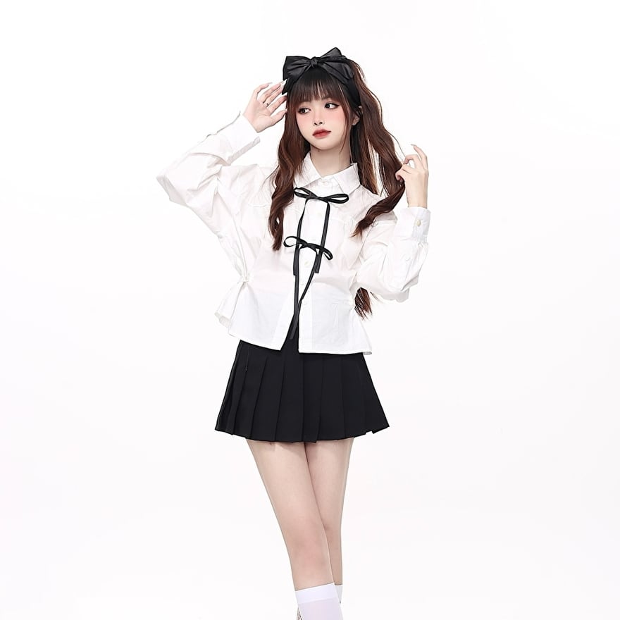 サブカル 服 地雷系 通販 CRAZYGIRL 白シャツ リボン 制服 かわいい ロリータ好き