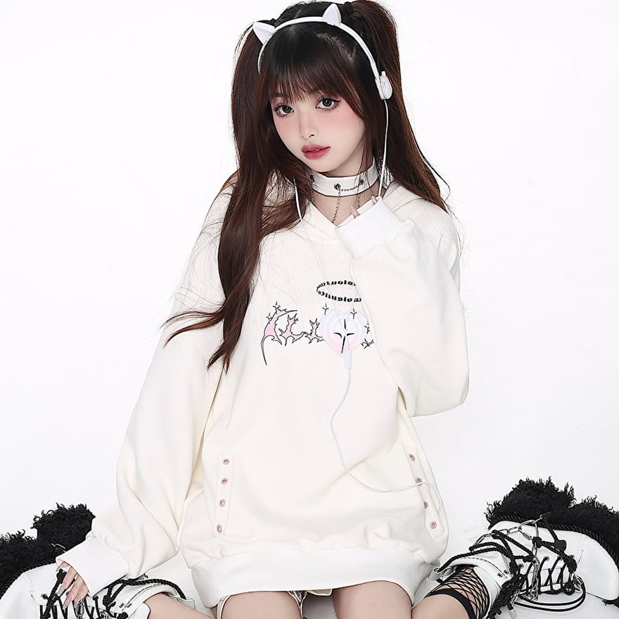 サブカル 服 地雷系 通販 CRAZYGIRL フーディ パーカー Love ロゴ プリント 甘め