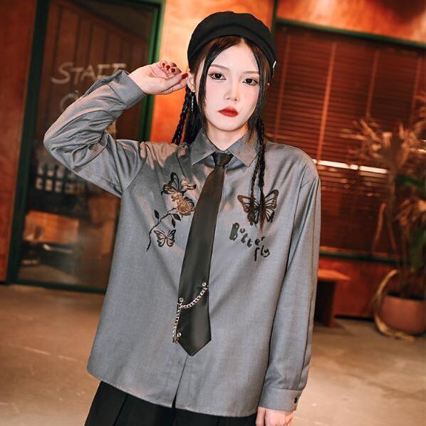サブカル 服 地雷系 通販 チャイナ風服 チャイナ風服 古怪舎 ネクタイ butterfly チェーン 闇かわいい ゴスロリゴシック サブカル服