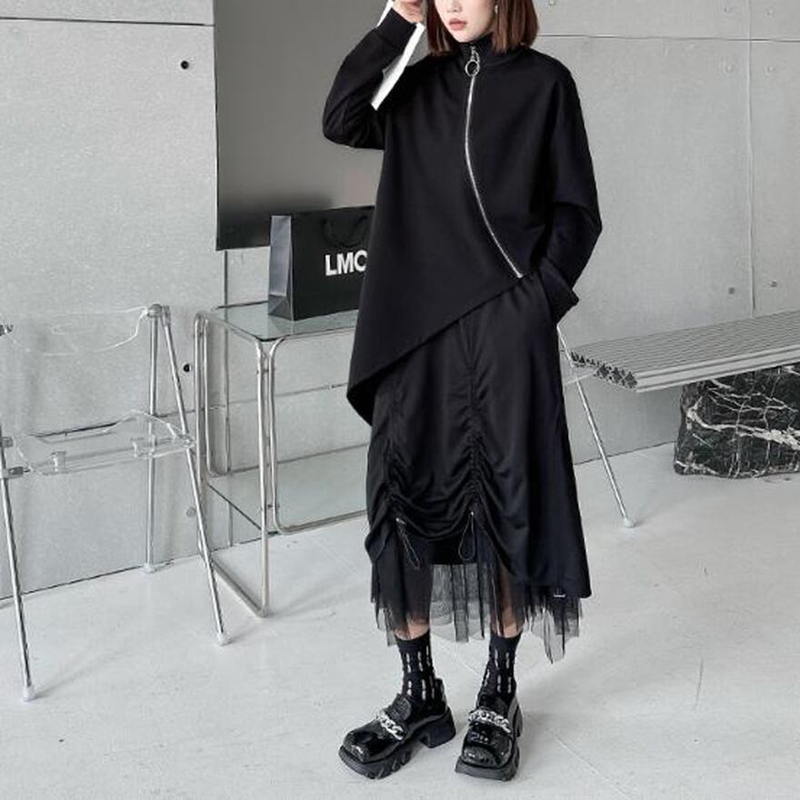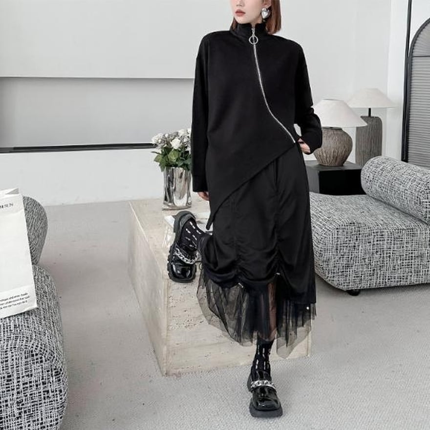 サブカル 服 地雷系 通販 トップス セーター ZIPアップ モード服 大人きれいめ デザイン 黒コーデ