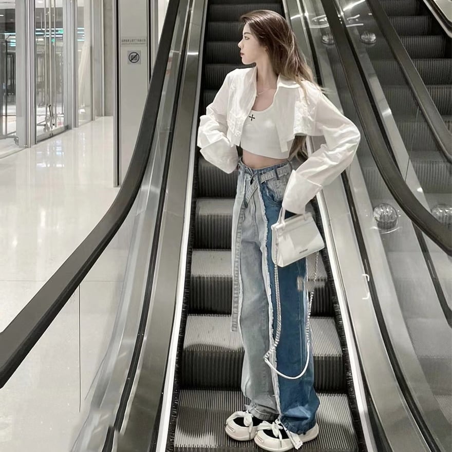 サブカル 服 地雷系 通販 デニム パンツ バイカラー 切りっ放し 韓国