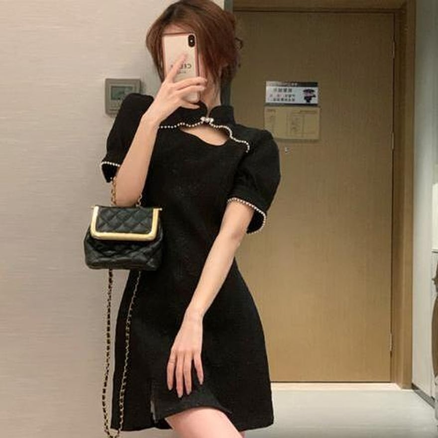 サブカル 服 地雷系 通販 ミニワンピ チャイナドレス スタンドカラー デコルテ 大人きれいめ チャイナ服