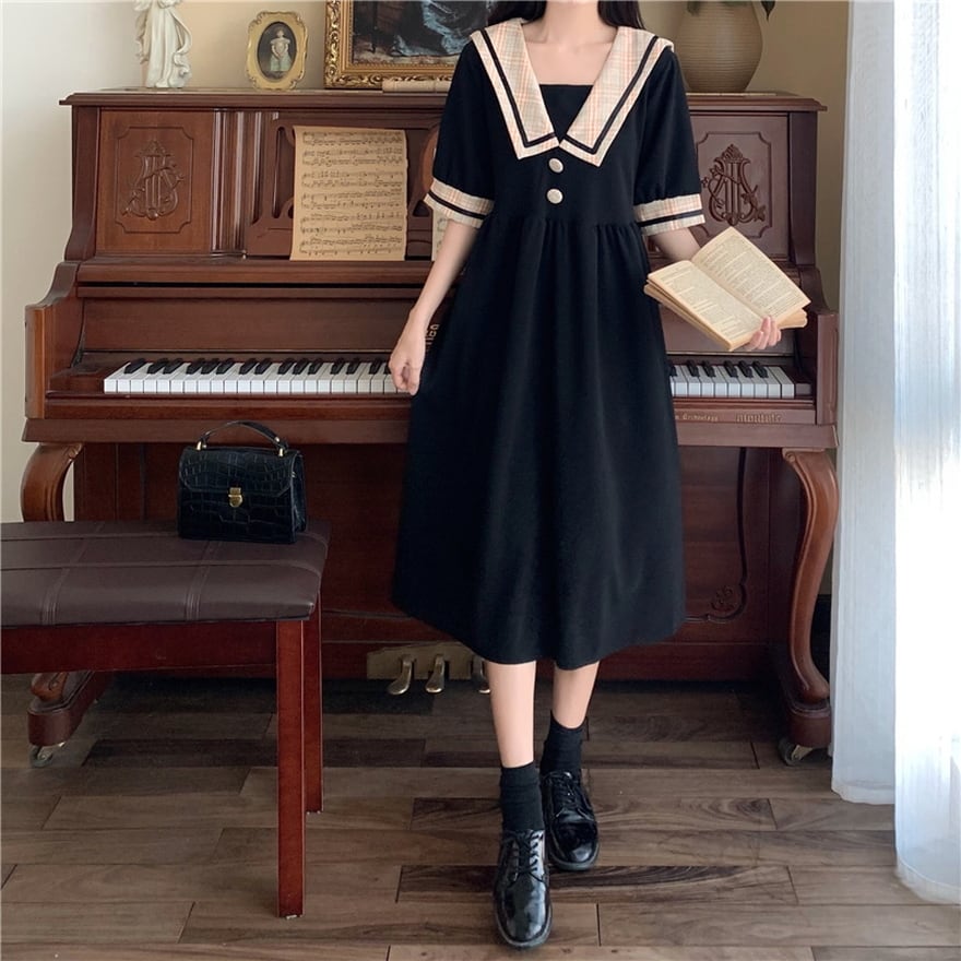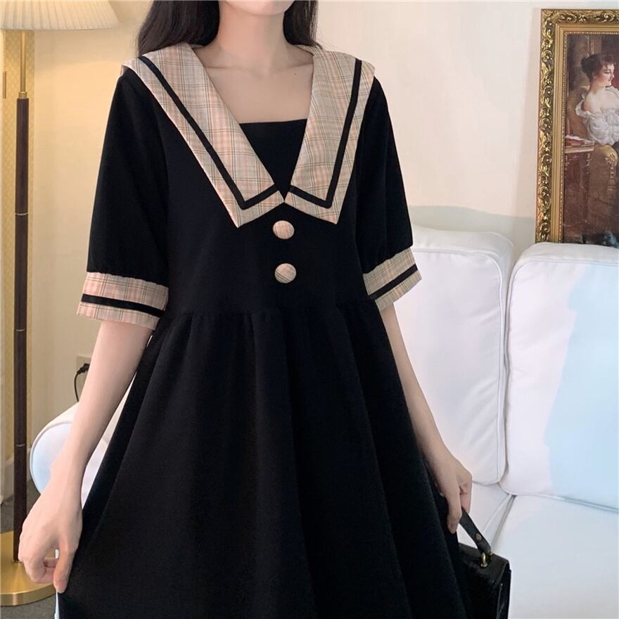クラロリのようなレトロなセーラー風半袖ワンピです