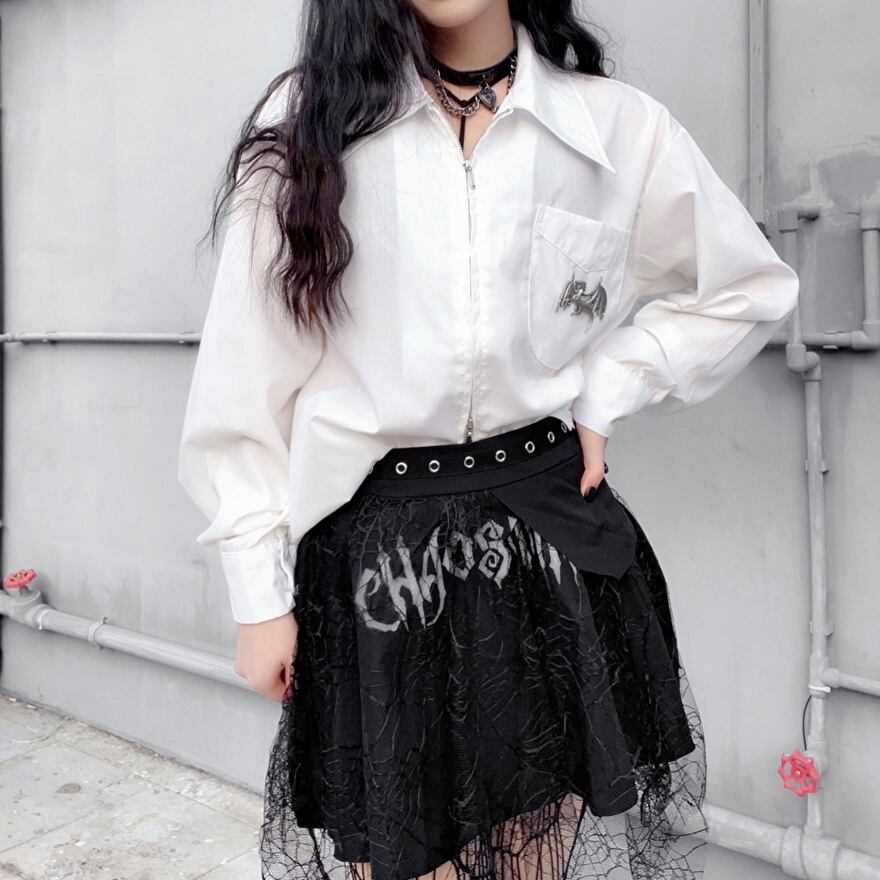 サブカル 服 地雷系 通販 Miub 長袖 シャツ ZIPアップ ロングシャツ 山本耀司風 暗黒系 闇かわいいサブカル服
