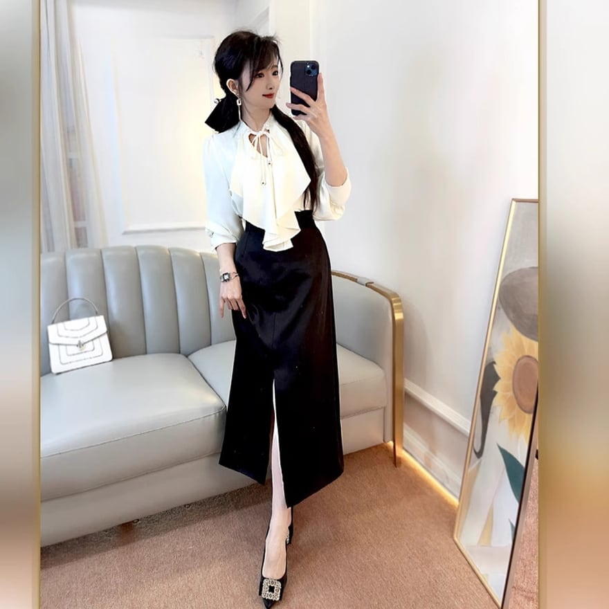 サブカル 服 地雷系 通販 春服 スリット スカート ロング丈 大人増し キレカジ Aライン 女子会 お呼ばれ きれいめ