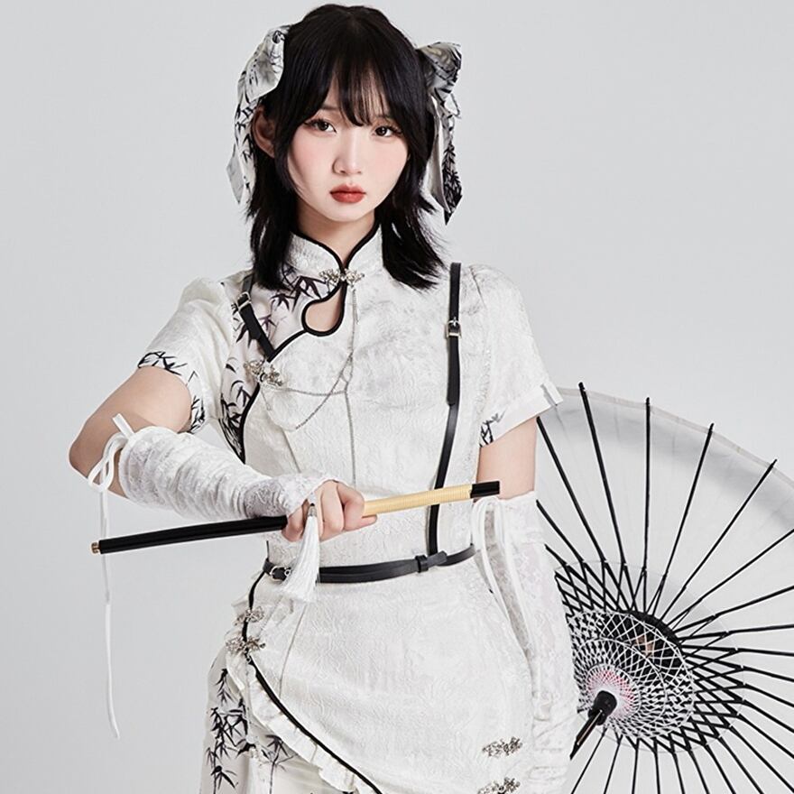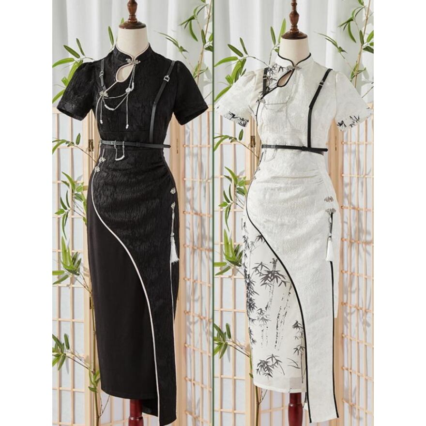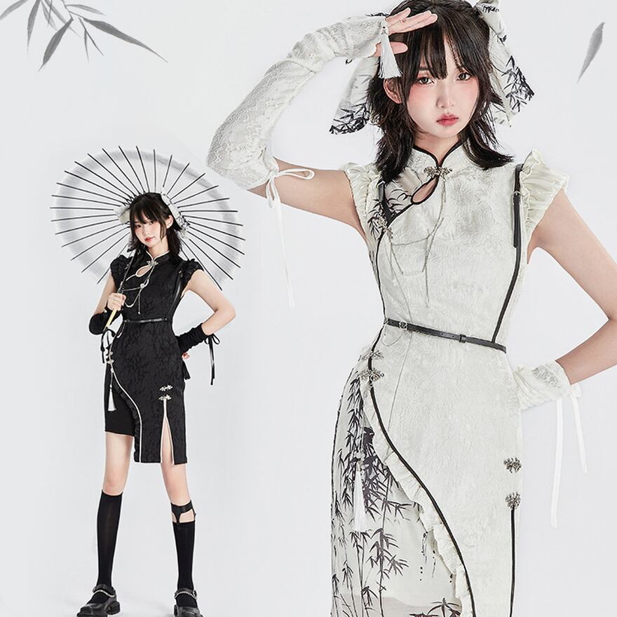サブカル 服 地雷系 通販 ワンピース 長袖 ロング丈 チャイナドレス タッセル レース ロリータ 華ロリ アイドル COS服