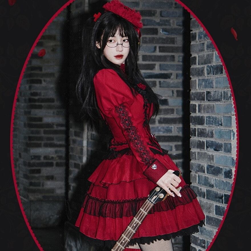 サブカル 服 地雷系 通販 予約販売 納期40日 セットアップ ジャケット ミニスカ レース コサージュ付属 バンギャル パンク ロリータ ロリパン コンカフェ COS