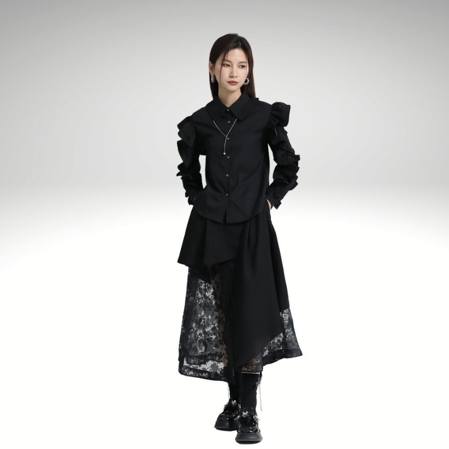 サブカル 服 地雷系 通販 ブラウス デザインシャツ フリル モード服 大人増し 大人かわいい 韓国ファッション オルチャン