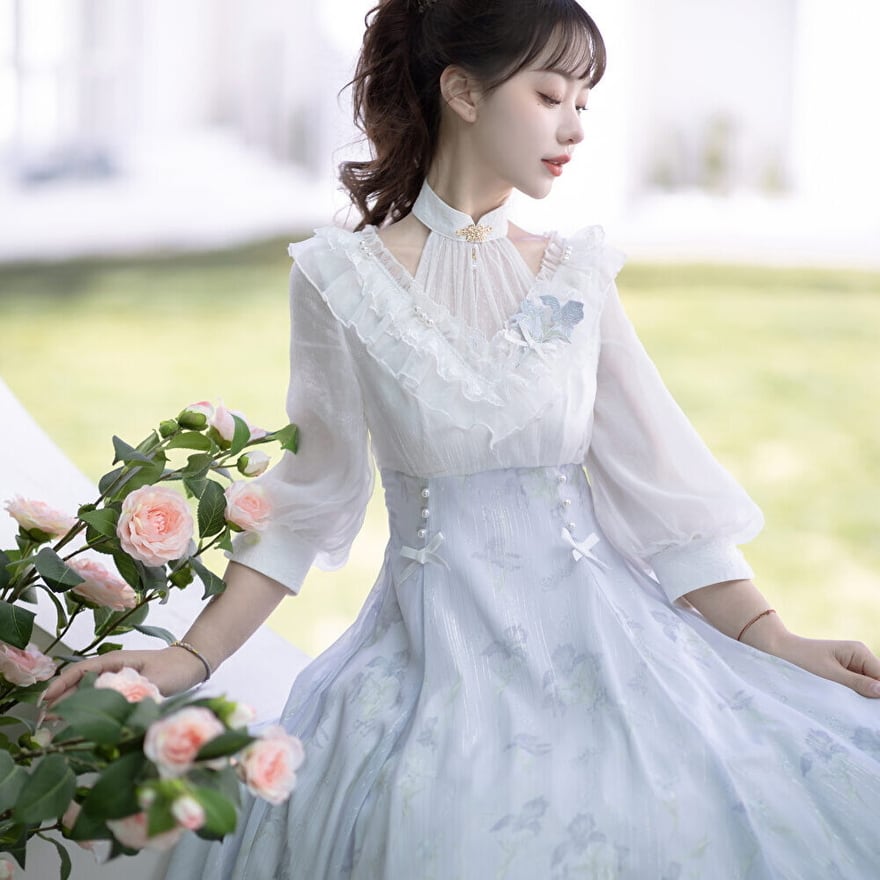 サブカル 服 地雷系 通販 春の新作 ホワイトロリータ ワンピース フリル シフォン スカート アイリス 春の装い 甘め 華ロリチャイナ服 かわいい