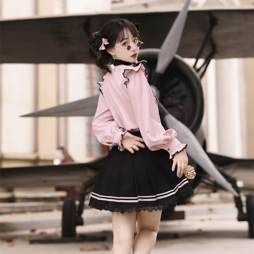 Sサイズ シャツ 着丈55 胸囲91 肩幅33 袖丈57 スカート 着丈44 ウエスト64〜70