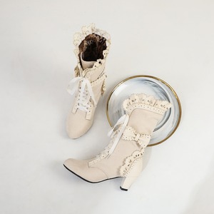 サブカル 服 地雷系 通販 ロリータブーツ ハイヒール リボン 編み上げ 踵高5.5 筒高23 PUレザー