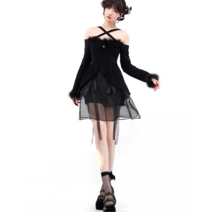 サブカル 服 地雷系 通販 pinksavior 闇かわいい サブカル服 B?????C??ss 高級ファーオフショル ワンピ 可愛い サブカル女子服