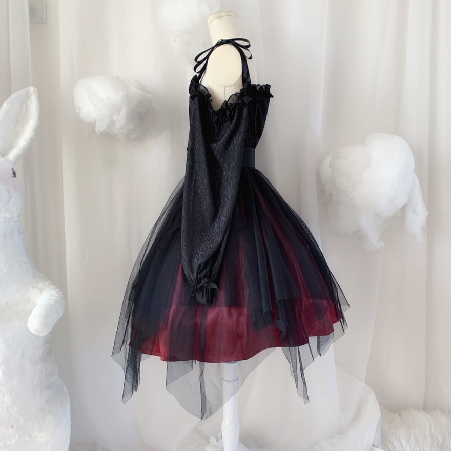 サブカル 服 地雷系 通販 ロリータ 梦梦の工作室シリーズ ゴスロリ JSK 闇かわいい レース レイヤード アシンメトリー 系