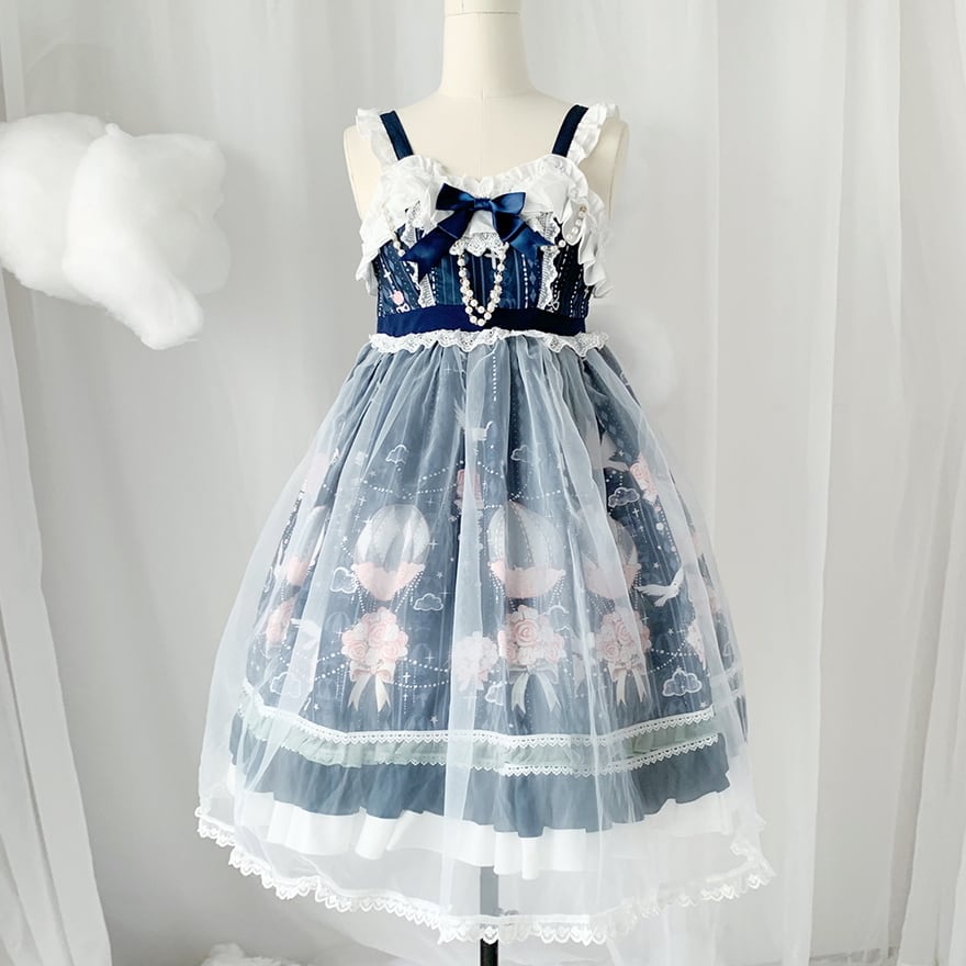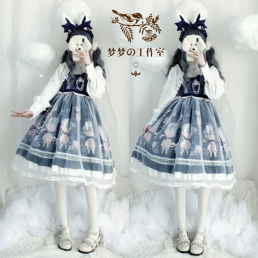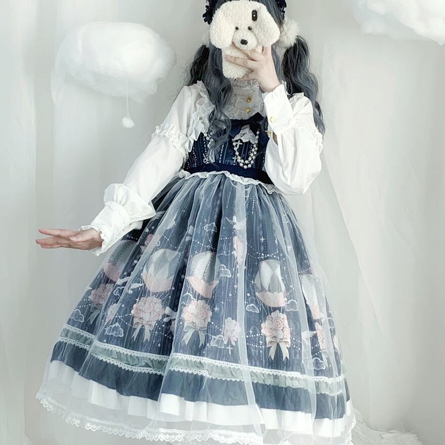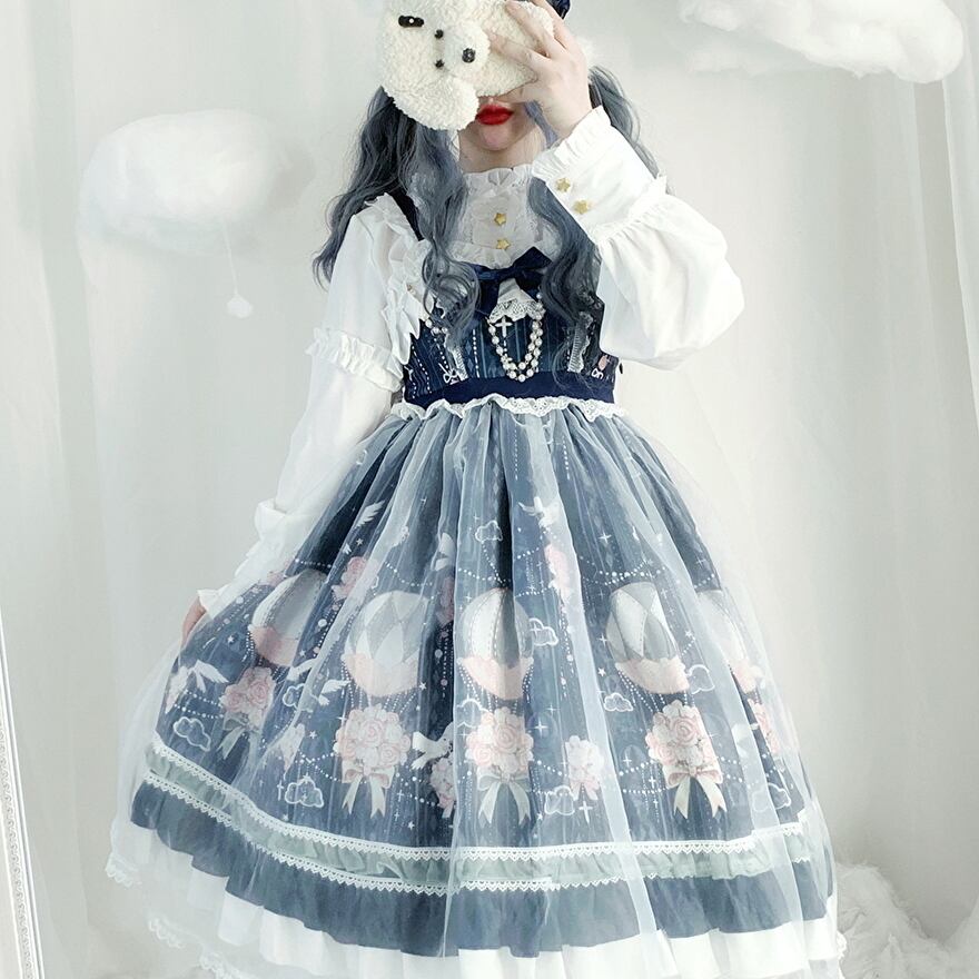 サブカル 服 地雷系 通販 梦梦の工作室シリーズ ロリータ セットアップ ブラウス JSK エレガント フェイクパール ロマンティック レース レイヤード
