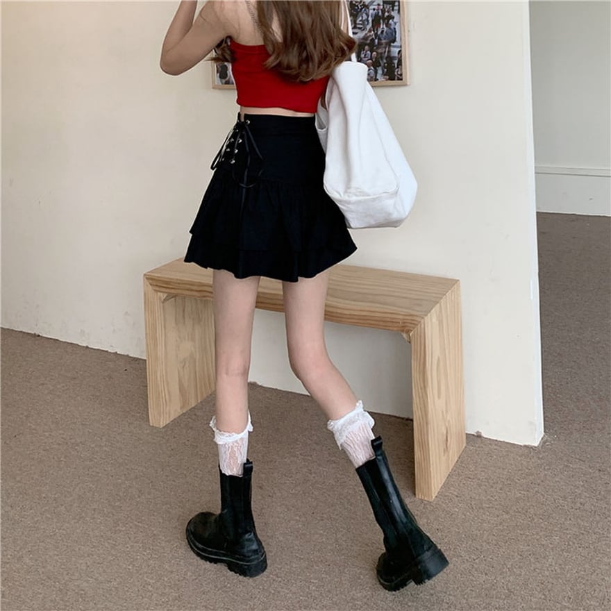 サブカル 服 地雷系 通販 ミニスカ ハイウエスト 編み上げ