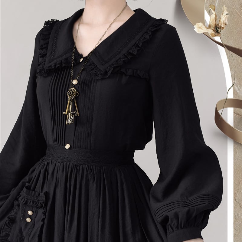サブカル 服 地雷系 通販 ブラウス クラロリ バルーンスリーブ フリル アコーディオン プリーツライン 上品 甘め