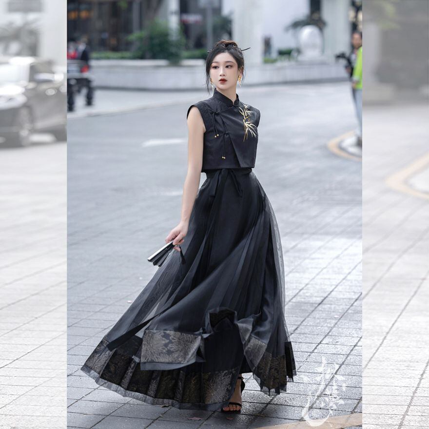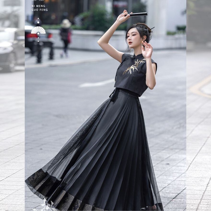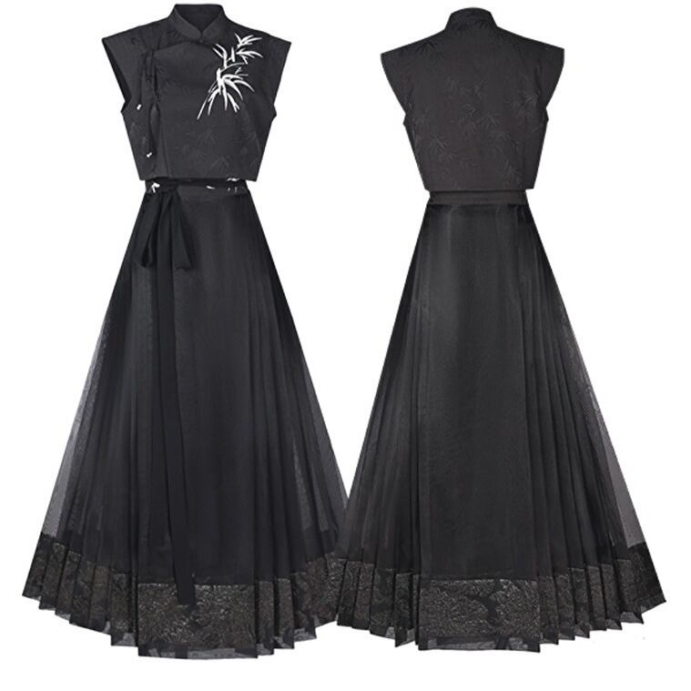 サブカル 服 地雷系 通販 ?梦オリジナル 巻きスカート ラップスカート 刺繍 banboo プリーツ ロング丈 レトロ チャイナ風 チャイナ服 大人ゴシック