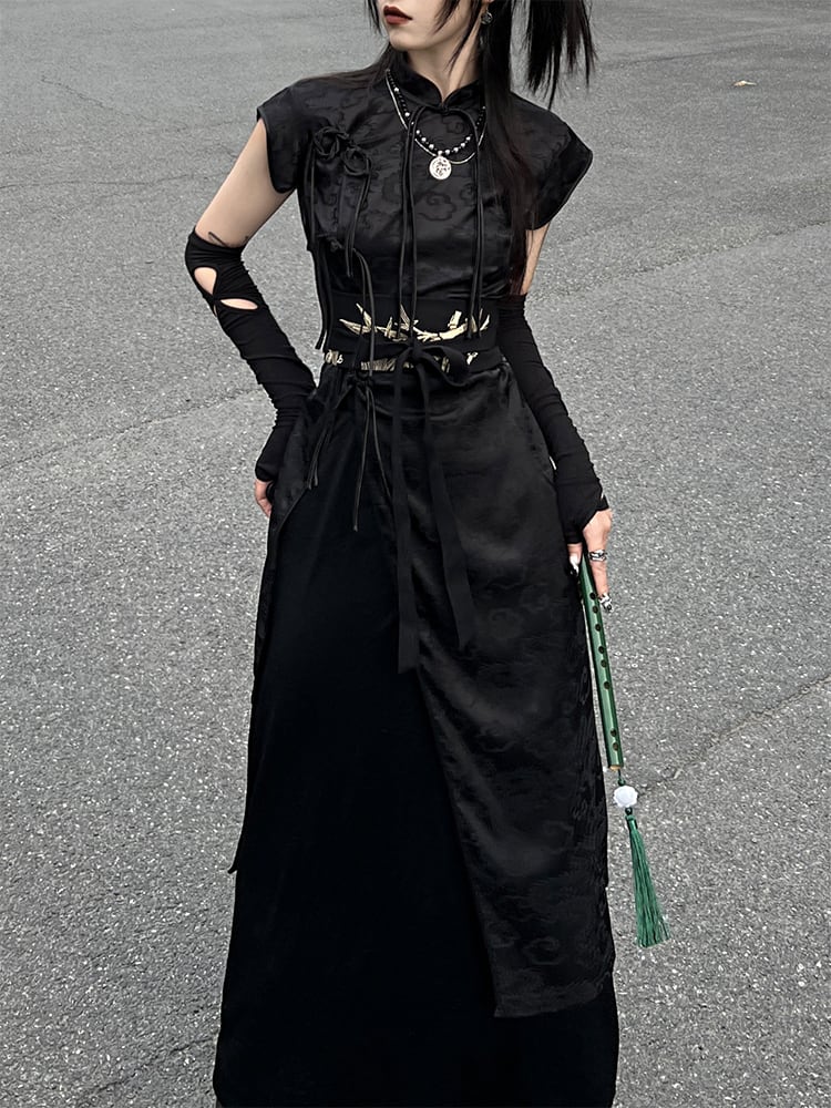サブカル 服 地雷系 通販 ブランド 云?斜簪シリーズ スリーブカバー チャイナ風 レース 闇かわいい 大人ゴシックチャイナ服 ストリート系