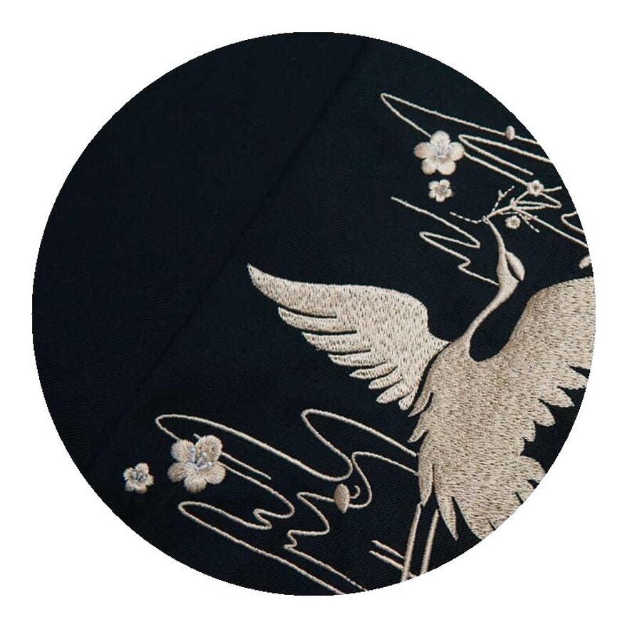 スリーブに刺繍された鶴の絵柄がクールな長袖シャツです。