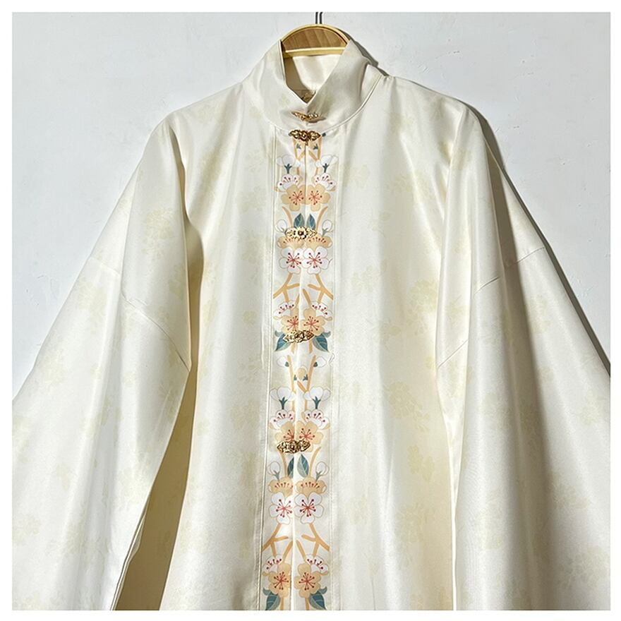 サブカル 服 地雷系 通販 チャイナ服ブランド SUPER STYLE シャツ 立ち襟 トランペットスリーブ 漢服 花柄プリント ロング丈 ハイウエスト 個性的チャイナ服