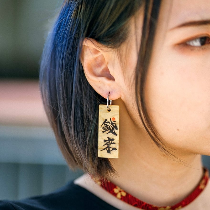 サブカルブランド古怪舎オリジナルのレトロな漢字デザインのイヤリングです