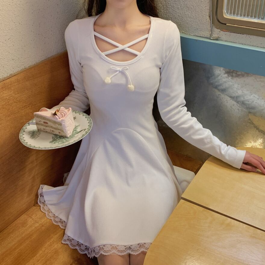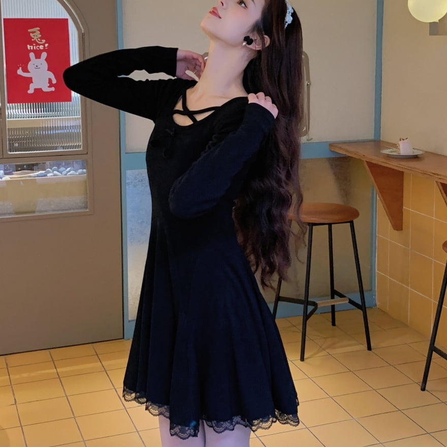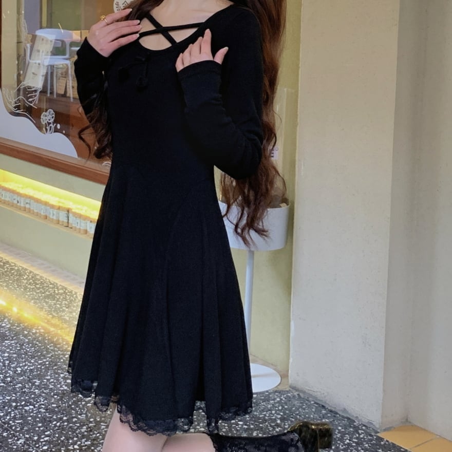 ネックのクロスデザインが病み可愛い春夏ワンピです