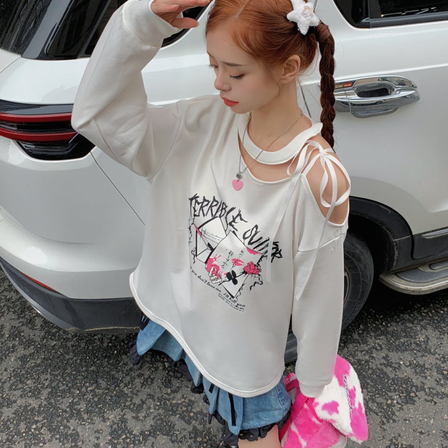 サブカル 服 地雷系 通販 Tシャツ 長袖 ワンショル チョーカー 闇かわいい 服 普段着 JK