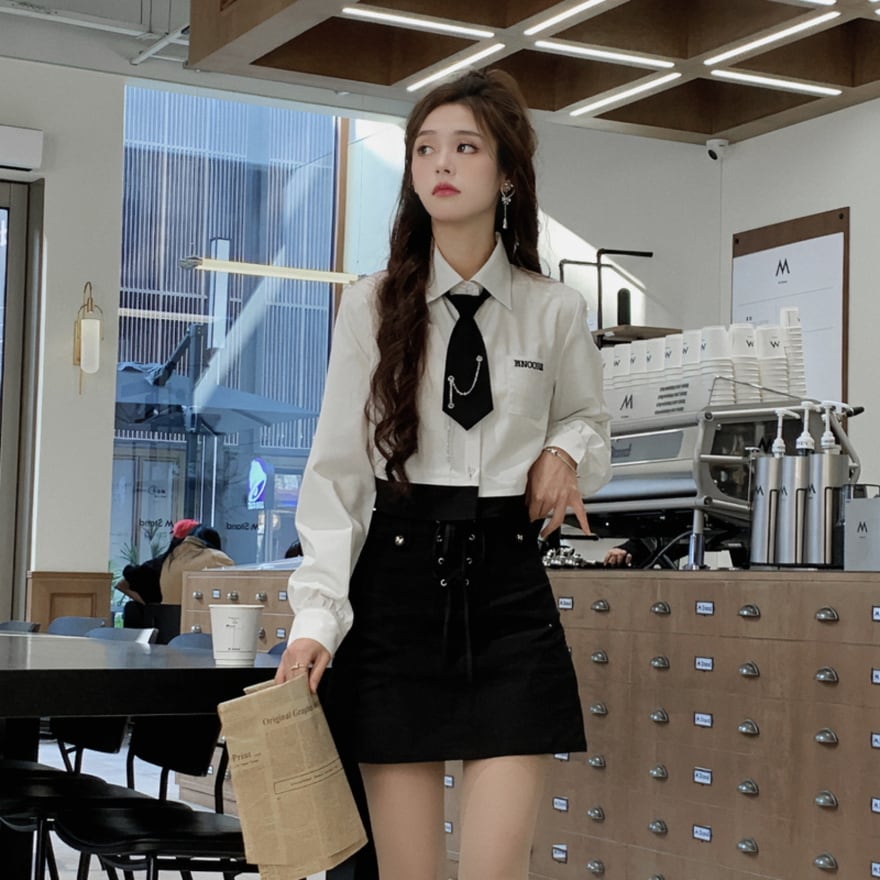 サブカル 服 地雷系 通販 シャツ ショート丈 ネクタイ付き 闇かわいい 服 普段着 JK