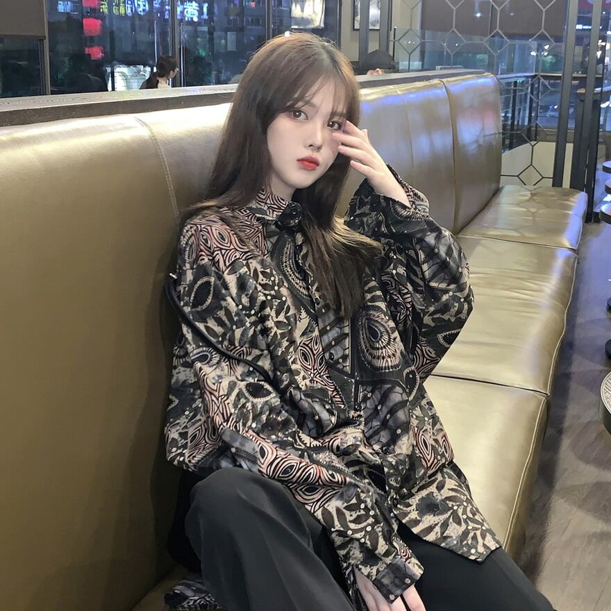 サブカル 服 地雷系 通販 長袖シャツ プリント柄 レトロ 闇かわいい ペイズリー柄 ユニセックス 普段着