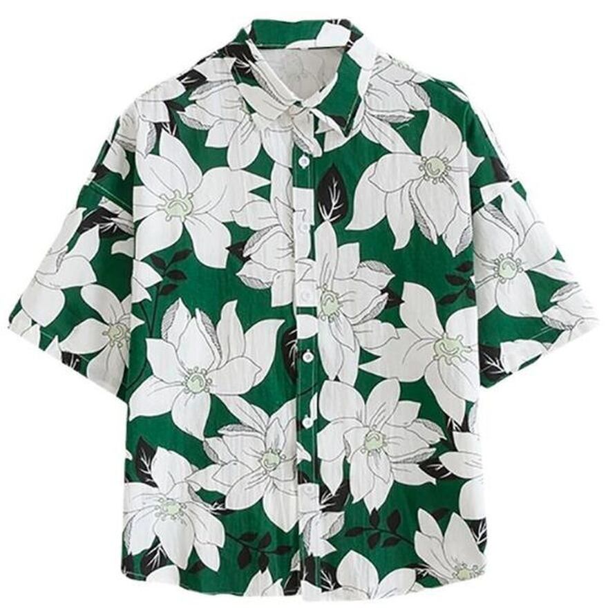 サブカル 服 地雷系 通販 半袖シャツ プリント柄 レトロ 百合 花柄 闇かわいい 韓国ファッション