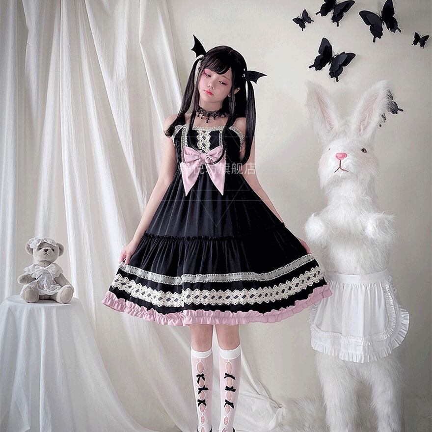サブカル 服 地雷系 通販 ジャンパースカート JSK チョーカー付き ロリータ ウエストリボン かわいい コンカフェ コスプレ