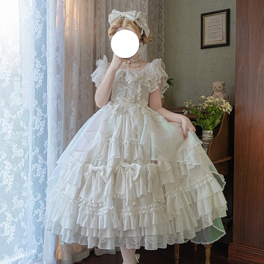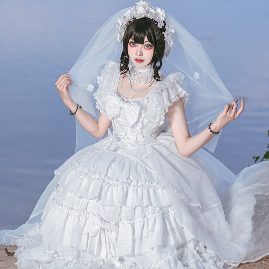 サブカル 服 地雷系 通販 ホワイトドレス ベール付き 豪華 エレガント 前撮り衣装 モデル衣装 チュチュ レース フリル 豪華 エレガント ロマンティック かわいい