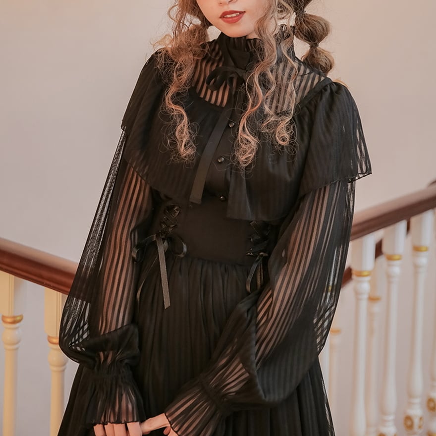サブカル 服 地雷系 通販 スターライト ブラウス シフォン シアー 透け感 ネックギャザー 袖コンシャス 上品 豪華