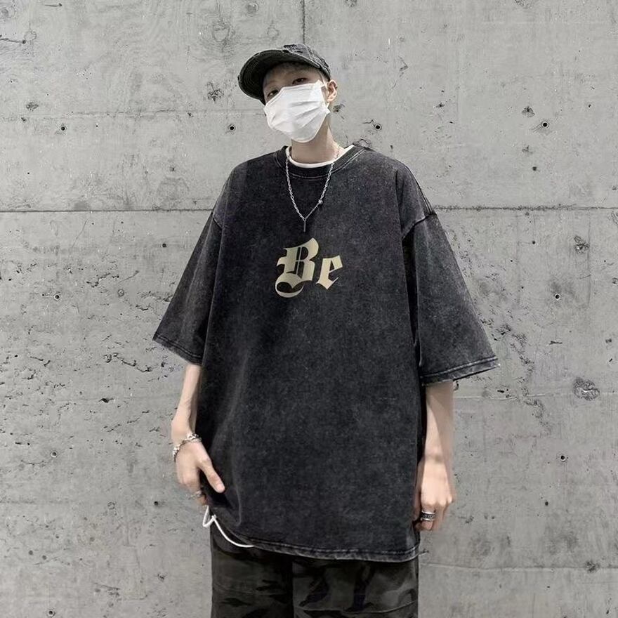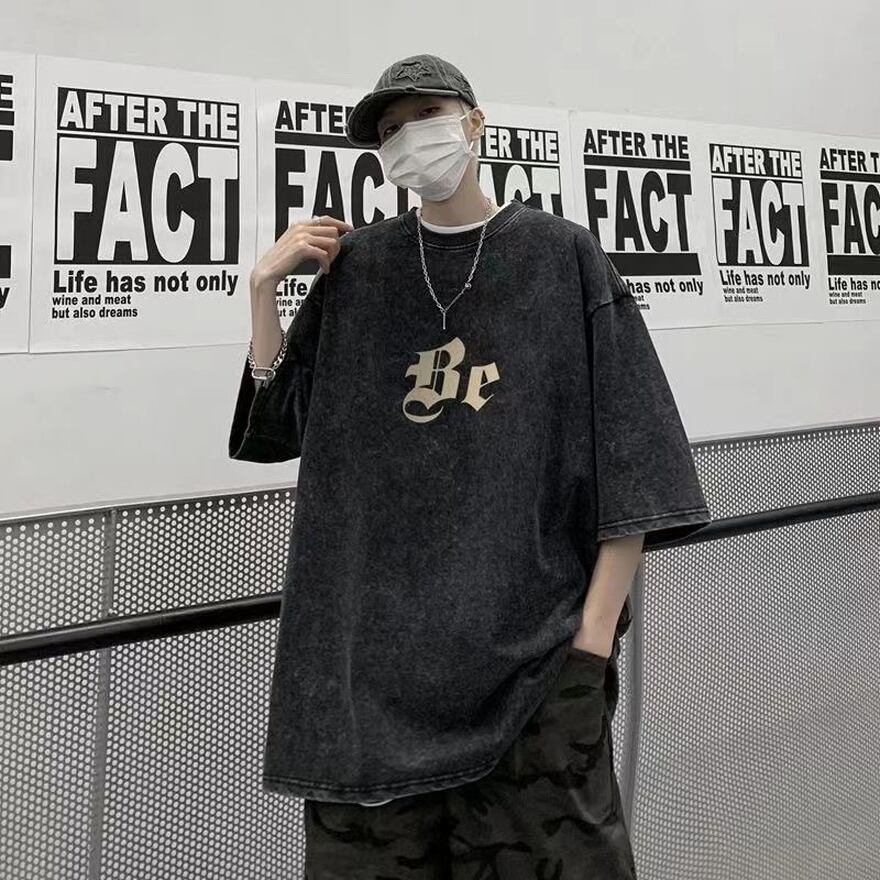 サブカル 服 地雷系 通販 メンズ Tシャツ ウォッシュドオールド ヒップホップ ダンス バックプリント クロス十字 オーバーサイズ ビッグシルエット カジュアル