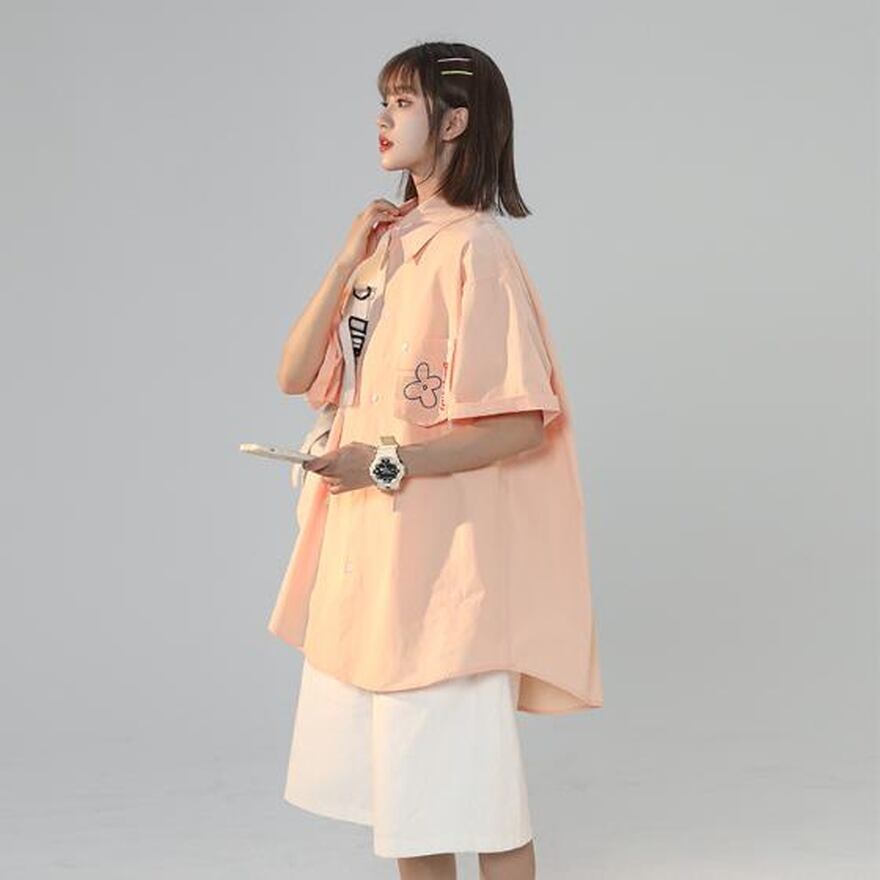 サブカル 服 地雷系 通販 POLOシャツ 半袖 カレッジスタイル 普段着使い 韓国ファッション