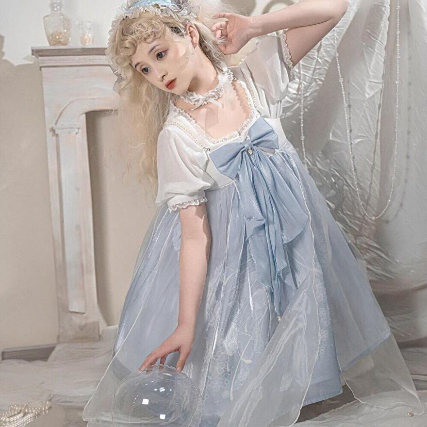 サブカル 服 地雷系 通販 ツーピース ブラウス JSK レースレイヤード スカートカバー パステルカラー リボン ロリィタ 服