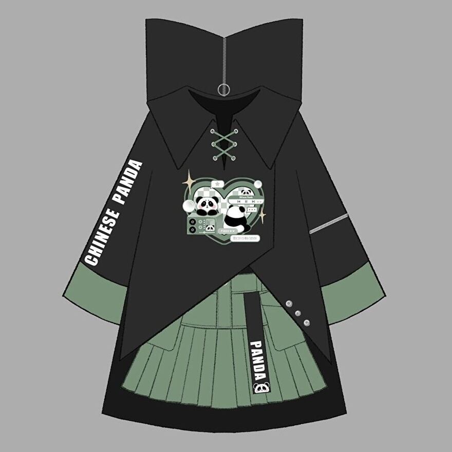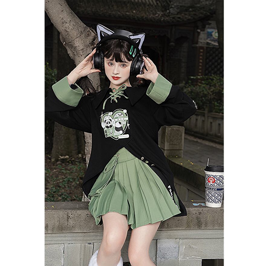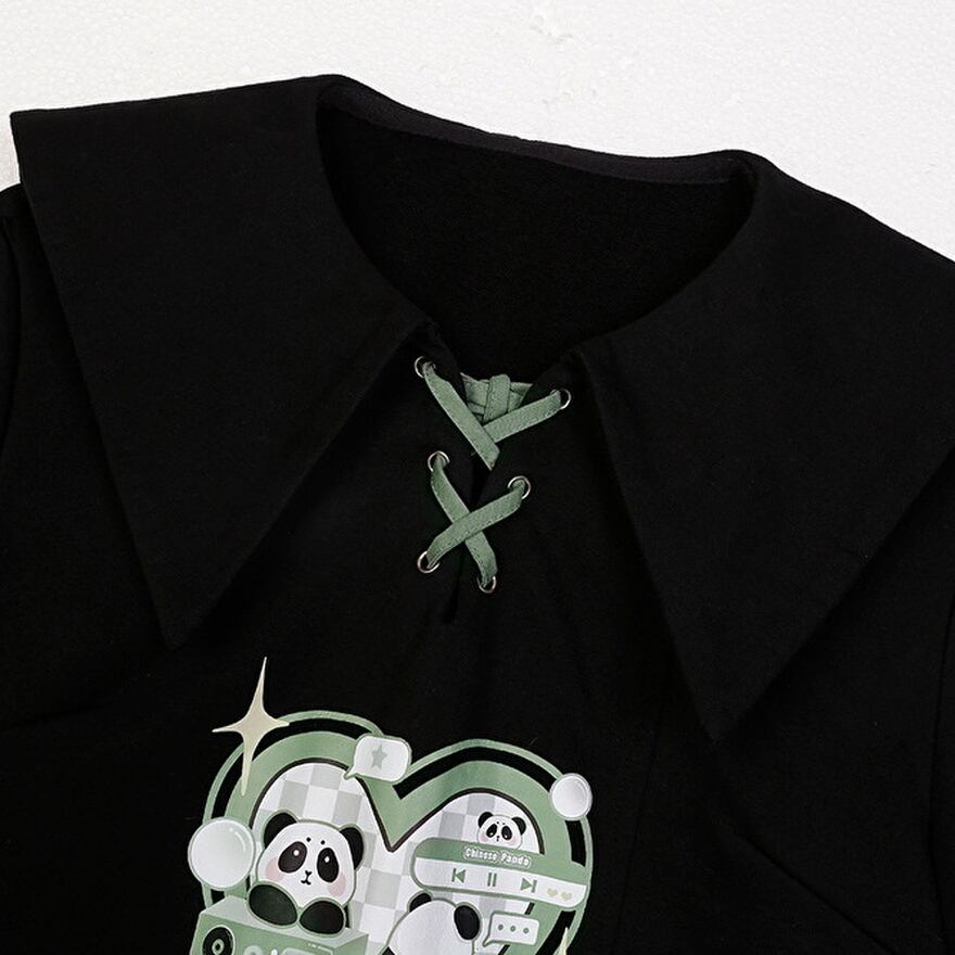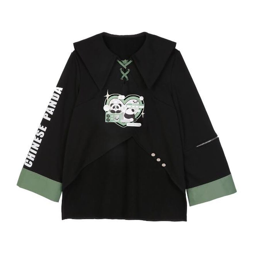サブカル 服 地雷系 通販 華ロリ トレーナー セーラー風 編み上げ バルーンスリーブ チャイナ風 パンダ レースアップ