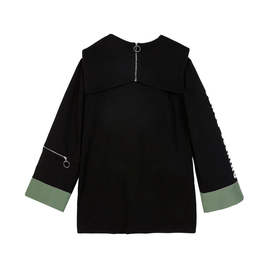 編み上げのデザイン、バルーンスリーブにセーラー風のカラーが可愛らしいチャイナ風のトレーナーです。