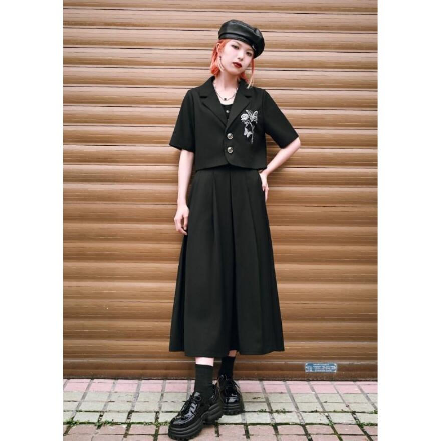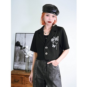 シンプルなショート丈のジャケットに、中国刺繍とチャイナ風のデザインが施されており、ストリート系ながらも高級感も漂います。